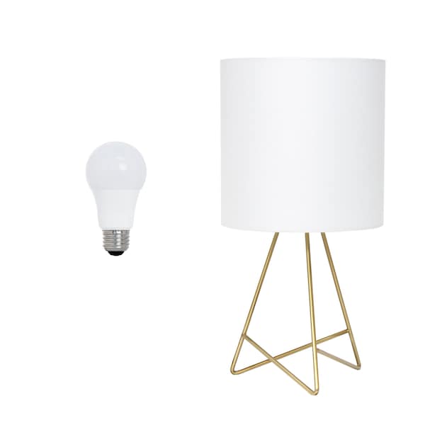 Add a bright anchor to your room with this 14-inch gold metal tripod table lamp led with white drum shade. The lamp is made of sturdy metal and features a gold color. Includes a white fabric, drum shaped shade, making this a fashionable piece that will complement most any interior. This standard table lamp is designed to provide general lighting to the area. The light that this lamp throws is soft and warm to elevate the look of most any space in your home. The perfect lamp to create just the right natural and soothing light in your space. 14.00-inch h x 7.00-inch w x 7.00-inch d.