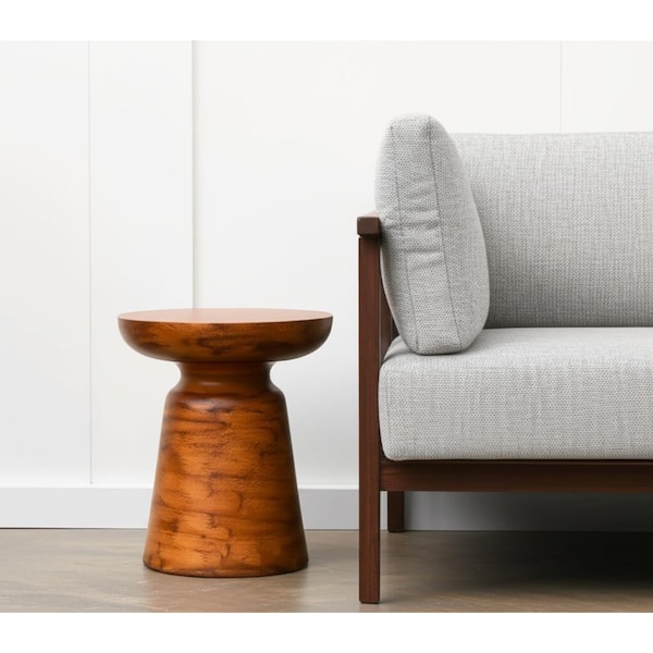 Distinctive in style the 15-inch natural iron and aluminum round pedestal end table radiates a versatile charm. A solid natural aluminum frame is finished off with a matching natural iron seat, giving this table a chic monotone look. Side tables are a great way to flank your sofa, use as an accent next to your favorite chair, or can even be used bedside. You can match it with other pieces to get the ideal look for your place. 15-inch h x 17-inch w x 17-inch d.