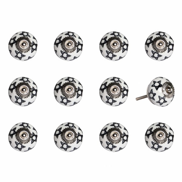Creatively adorned with bright hues of colors, our 12 pack knobs will suitably accent any furniture in the home. Add a classic touch to your room decor with these ornate pieces that are artfully hand-painted by our skilled artisans. Whether you want them on your doors, drawers, cabinets or wardrobes, these charming knobs are designed to perfectly anchor your living space with an enduring style. Each of these chic knobs comes with a bolt that can be cut to size to fit into any furniture piece, making it highly multi-functional. Available in assorted colors.