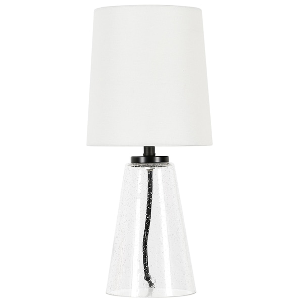 16" Clear Glass Geometric Table Lamp With White Drum Shade