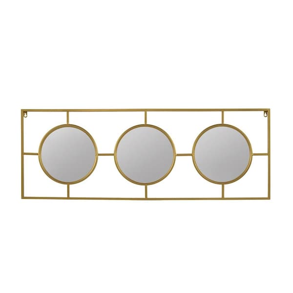 Beautify your space with an ornament that's original and unique at the same time with this 16-inch gold iron framed accent mirror. Inside the frame there is a rectangle shaped mirror which will open up any space you hang this piece in. This frame works nicely with the full-bodied mirror in the middle. Due to its high quality construction, it will last a lifetime. This beautiful mirror will add brightness into any room your choose put this mirror in. 15.7-inch H x 43.3-inch W x 0.8-inch D