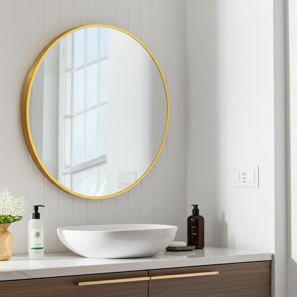 16" Gold Round Aluminum Framed Bathroom Vanity Mirror