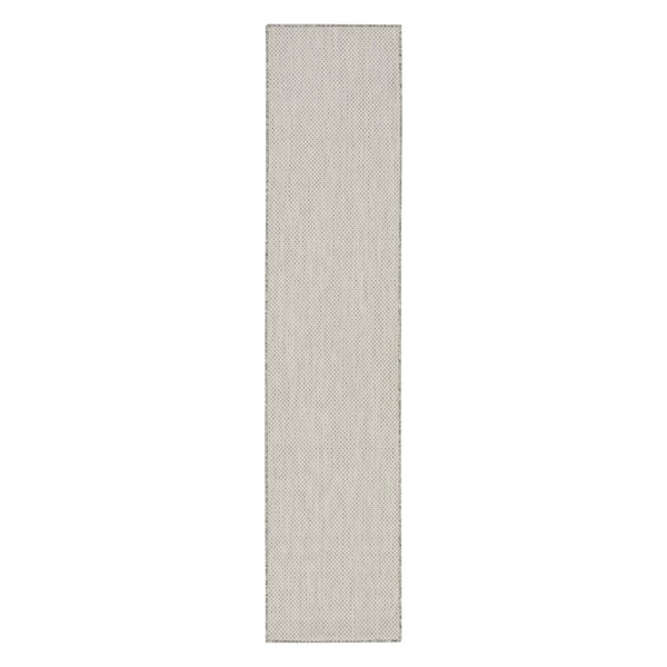 Add great coloration and comfortable texture to your space with this 16-foot ivory and silver geometric indoor outdoor runner rug. This runner shaped rug features a geometric design that will work well both indoors or out. A classic shape marries with good looking design for your living room, hall, bedroom, porch, patio, or poolside. Versatile in use, durable, and easy to maintain, this rug is an ideal solution to add a decorative and inviting touch to your indoor or outdoor space. 26-inch h x 192-inch w x 0.25-inch d.