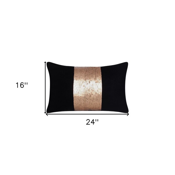 16" X 24" Black Striped Polyester Zippered Pillow With Beads