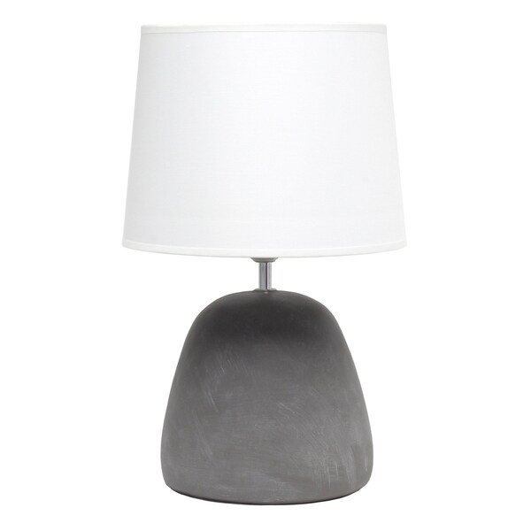 This 17-inch white concrete round table lamp with white drum shade is a great way to add some brightness to any corner of your home. A gorgeous white concrete base brings just the right amount of pizzazz to this fabulous lamp. Includes a white fabric, drum shaped shade, making this a fashionable piece that will complement most any interior. This standard table lamp is designed to provide general lighting to the area. Use this lamp anywhere and elevate the look of the whole space. Bring some lite and good vibes into your space with this updated and stylishly designed lamp. 16.93-inch h x 10.24-inch w x 10.24-inch d.