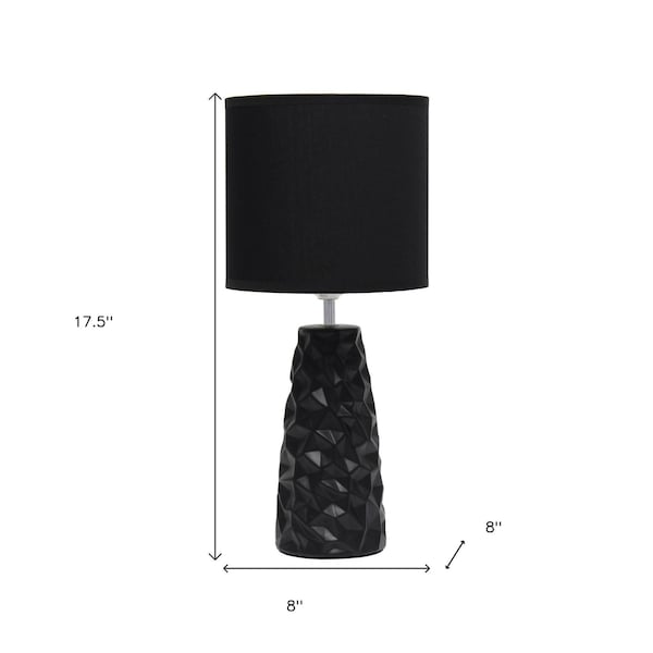 Truly a mix of design and functionality that doesn't compromise on style, this 18-inch black and silver ceramic geometric table lamp with black drum shade will be a great addition to your space. A gorgeous black and silver ceramic base brings just the right amount of pizzazz to this fabulous lamp. Includes a black fabric, drum shaped shade, making this a fashionable piece that will complement most any interior. This standard table lamp is designed to provide general lighting to the area. The light that this lamp throws is soft and warm to elevate the look of most any space in your home. Bring some lite and good vibes into your space with this updated and stylishly designed lamp. 17.50-inch h x 8.00-inch w x 8.00-inch d.