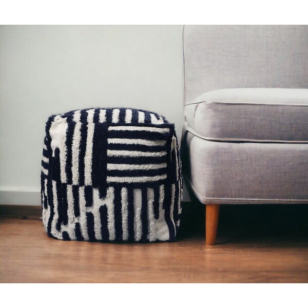 Add a good looking decorative accent to your space that is also practical for seating. Add chic style to your space with this fun pouf that not only looks cool but can be a great foot rest or extra seat when needed. Expertly upholstered with padding and soft cotton in a striped pattern, this ottoman is as comfortable as it is good looking. Ottomans are multi-functional additions to your space that add fashion and practical value. 18-inch H x 18-inch W x 18-inch D