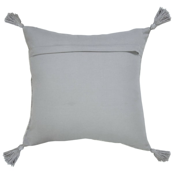 The perfect complement to your sofa, favorite chair, or bed, this 18-inch gray and silver geometric viscose throw pillow cover with tassels is a great decorative accent. Durable gray and silver viscose has been used to give this pillow cover a beautiful look that will stand the test of time. Charming decorative tassels give this design texture along with a hand-crafted look and feel. Pillow covers are a good idea for anyone that loves to decorate or accent their space with color and texture. Combine with your own fill or insert to add decoration and dimension to your favorite chair, accent your sofa, or to use as part of your bed ensemble. 18.00-inch h x 18.00-inch w x 0.25-inch d.