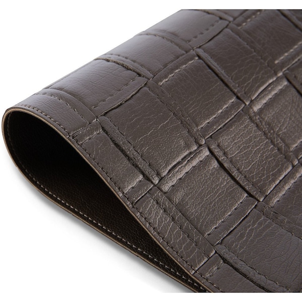 18-inch set of four espresso faux leather placemats adds a touch of elegance to your dining experience. Crafted from high-quality faux leather, these placemats are designed to enhance any table setting with their contemporary style. The set includes four rectangular placemats, perfect for larger gatherings or intimate dinners alike. With their reversible design, you can easily switch up the look to suit your mood or occasion. The rich espresso color complements a variety of decor themes, making them a versatile choice for any home. These durable placemats are easy to clean, ensuring that your dining space remains stylish and tidy. Elevate your mealtime aesthetics with this chic and practical dining linen set. 12.00-inch h x 18.00-inch w x 0.01-inch d.