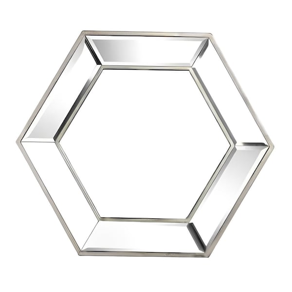 If you want to add some brightness to your living space, the 18-inch silver hexagon glass framed accent mirror is perfect for you. The hexagon shaped mirror adds a nice touch of depth and texture and also makes it very practical. This mirror makes any room glow with its fantastic frame. The contemporary style of this piece will work great in any room you choose to put it in. Its both exceptional and tasteful, and its tough as well. This mirror will not only be a great practical addition to any location of your home but will also help elevate the space in the room. 17.9-inch H x 20.7-inch W x 1.6-inch D
