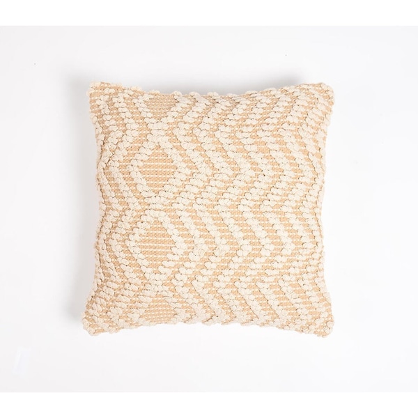 The 18-inch x 18-inch beige and ivory zigzag cotton zippered pillow cover with texture is the perfect decorative accessory for your home. The beige and ivory coloring of the soft and long lasting 100% cotton pillow cover will add dimension and texture to your space. Fun and decorative tufts add some high end and hand-crafted textural designer touches. For anyone that loves to decorate or accent their space with color and texture. A great decorative accessory for your favorite chair, to accent your sofa, or to use as part of your bed ensemble. 18-inch H x 18-inch W x 0.1-inch D