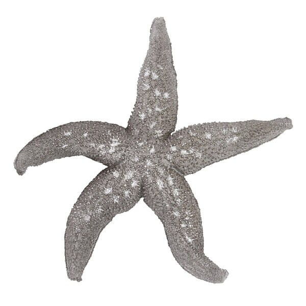 Bring the splendor of the sea into your space with the mesmerizing antiqued silver colored resin starfish hanging dimensional wall decor. Update your walls with this great tropical sea life dimensional wall sculpture. This piece features a stunning starfish design that embodies the essence of coastal living. Crafted from durable resin that is sculpted and textural, it offers both beauty and longevity. 19-inch h x 19-inch w x 2-inch d.