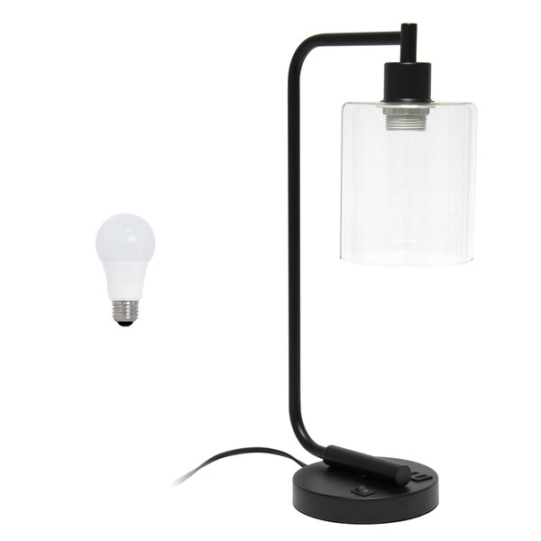 This 19-inch black iron lantern usb table lamp led with clear cylinder shade is the perfect combination of design and function. The base of this lamp is made of iron finished in a black tone. The clear cylinder glass shade is a great compliment to this lamp. This standard table lamp is designed to provide general lighting to the area. High quality design makes this a great lamp for not only lighting, but accenting a room with style. Bring some lite and good vibes into your space with this updated and stylishly designed lamp. 18.80-inch h x 5.75-inch w x 9.75-inch d.