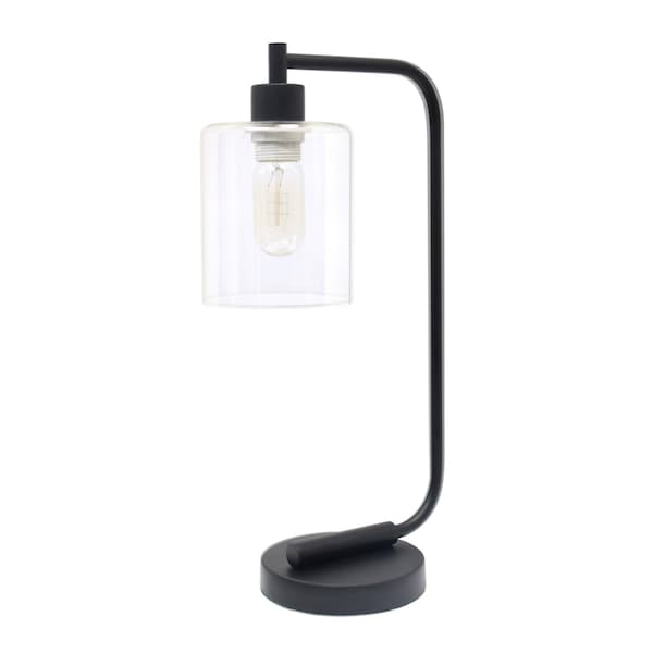 Bring of level of elegance and freshness to your space with this high quality 19-inch black metal lantern table lamp with clear cylinder shade. A gorgeous black metal base brings just the right amount of pizzazz to this fabulous lamp. The clear cylinder glass shade is a great compliment to this lamp. This standard table lamp is designed to provide general lighting to the area. The light that this lamp throws is soft and warm to elevate the look of most any space in your home. Bring some lite and good vibes into your space with this updated and stylishly designed lamp. 18.80-inch h x 5.75-inch w x 9.75-inch d.