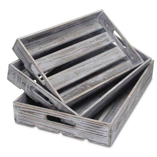 19 in. Rectangular Wood Handmade Tray with Handles, Gray