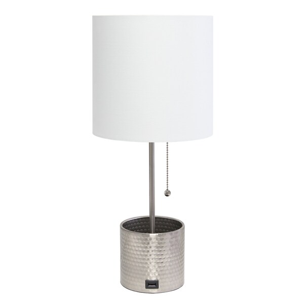 Embrace the good life with this hard working and stylish 19-inch nickel metal usb table lamp with white drum shade. The base of this lamp is made of nickel metal. Includes a white fabric, drum shaped shade, making this a fashionable piece that will complement most any interior. This standard table lamp is designed to provide general lighting to the area. Use this lamp anywhere and elevate the look of the whole space. The perfect lamp to create just the right natural and soothing light in your space. 18.50-inch h x 8.00-inch w x 8.00-inch d.