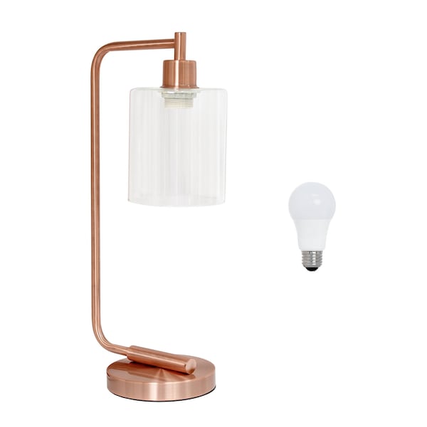 Bring of level of elegance and freshness to your space with this high quality 19-inch rose gold iron lantern table lamp led with clear cylinder shade. The base of this lamp is made of rose gold iron. The clear cylinder glass shade is a great compliment to this lamp. This standard table lamp is designed to provide general lighting to the area. High quality design makes this a great lamp for not only lighting, but accenting a room with style. Bring some lite and good vibes into your space with this updated and stylishly designed lamp. 18.80-inch h x 5.75-inch w x 9.75-inch d.