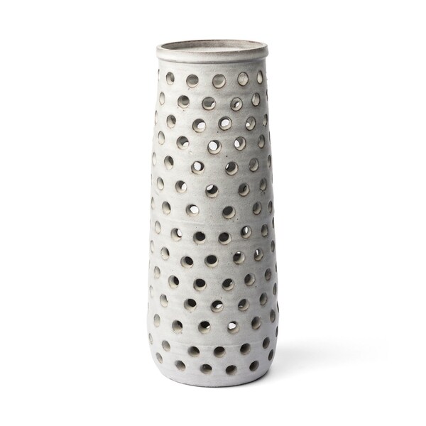 Ideal for displaying faux or dried flowers, it effortlessly elevates your home ambiance. A cylinder shape features pierced polka dot pattern and a gorgeous reactive glaze to add a modern artisanal vibe to any room. Crafted from durable ceramic with a rustic finish, this vase is perfect for displaying your favorite faux blooms or standing alone as a striking decor piece. Its versatile style makes it an ideal way to add a modern touch to most any decor, whether placed on a table, shelf, or mantel. 19.00-inch h x 7.50-inch w x 7.50-inch d.