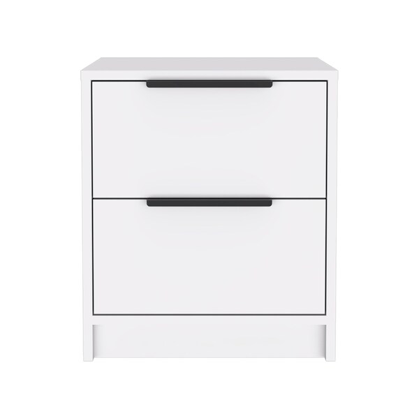 Our 19-inch white wood two drawer nightstand will compliment your bed beautifully. Robust in design, the bed side table has been expertly crafted from manufactured wood. This piece has 2 drawers for your storage needs. The unsung hero of the bedroom, this nightstand is perfect for keeping a glass of water, lamp, alarm clock, jewelry, and more, close by and easily accessible. Look no further than this nightstand to accommodate all your needs and upgrade the style of your bedroom. 18.8-inch h x 16.1-inch w x 14.2-inch d.