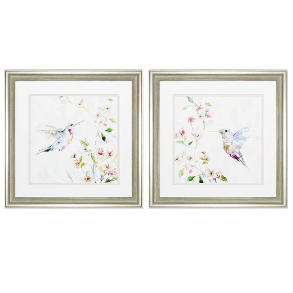 19" X 19" Brushed Silver Frame Hummingbird, Set Of 2, 2PK