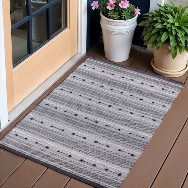 Set an inviting tone in your space with this 2-foot x 3-foot blue patchwork hand woven area rug. This rectangle shaped rug features a patchwork design in blue to give it visual interest. A classic shape marries with good looking design for your space ideal for spaces with kids and pets, this rug is stain resistant to help repel stains and spilled liquids. Crafted by skilled artisans, this hand woven rug is genuine and unique. No two will be exactly alike. Place this area rug against a hardwood or tile floor and it will enliven your living space with style and sophistication. 24-inch H x 36-inch W x 0.3-inch D
