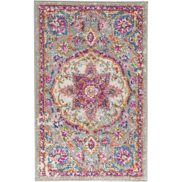 2 x 3 ft. Gray & Pink Medallion Scatter Area Rug