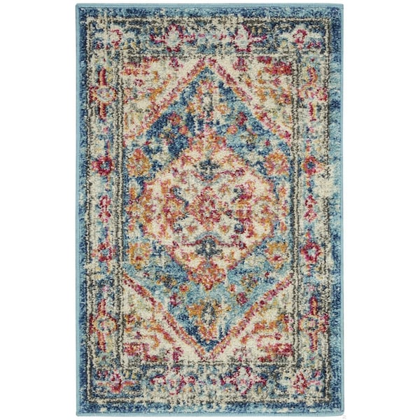 2 x 3 ft. Ivory & Light Blue Distressed Scatter Area Rug