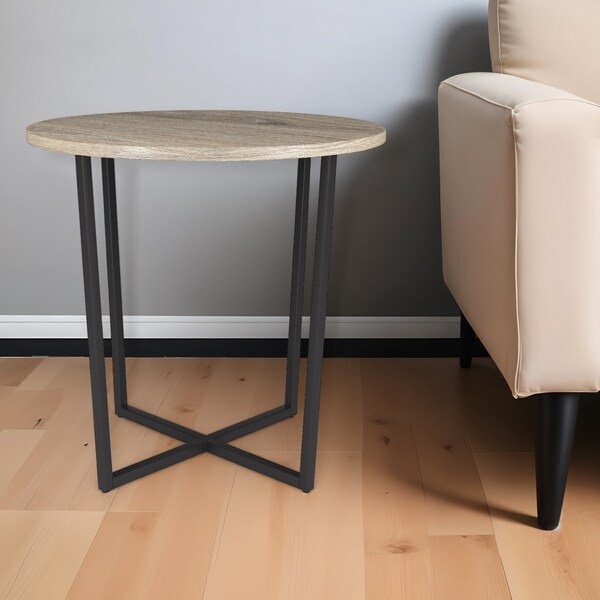 Optimize your space and add some charm to your room with the 20-inch black and gray wood and steel round end table. The base of this table is made from steel in a black color that is a nice contrast to the gray manufactured wood tabletop. A great accent on either side of the sofa or bed, this adorable end or side table is just what you need. You can also use it as an entryway table to hold your keys. 20-inch H x 22-inch W x 22-inch D