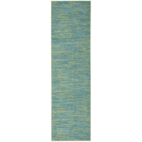 Set an inviting tone in your space with this 20-foot blue and green indoor outdoor runner rug. This runner shaped rug flaunts a blue and green color that will be a great way to accent your space. Solid colors are versatile and will blend with any existing decor style. Makes a great way to dress up your patio, porch, or poolside, but also works well as a durable and easy to maintain option in the kitchen, family room, or mudroom. 26-inch h x 240-inch w x 0.25-inch d.
