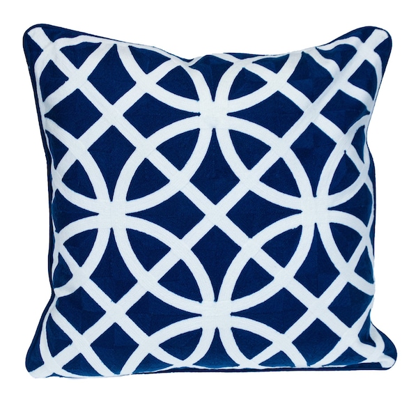 The 20-inch blue and white geometric cotton throw pillow is the perfect decorative accessory for your home. Durable blue and white cotton has been used to give this pillow a beautiful look that will stand the test of time. This soft polyfill filled pillow not only is decorative but made to be comfy and cozy all day long. For anyone that loves to decorate or accent their space with color and texture. Decorative pillows are a great way to change up the look and feel of your space easily and quickly. 20-inch H x 20-inch W x 0.5-inch D