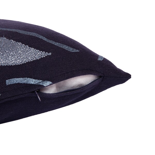 The 20-inch blue geometric cotton blend throw pillow with embroidery is the perfect decorative accessory for your home. Durable blue cotton blend has been used to give this pillow a beautiful look that will stand the test of time. This soft polyfill filled pillow not only is decorative but made to be comfy and cozy all day long. Great to use on its own or mix with other decorations for the perfect look. Decorative pillows are a great way to change up the look and feel of your space easily and quickly. 20-inch H x 20-inch W x 8-inch D