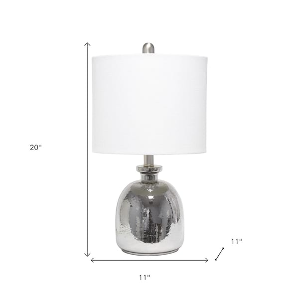 This 20-inch gray glass novelty table lamp with white drum shade is a great way to add some brightness to any corner of your home. The base of this lamp is made of gray glass. The white drum fabric shade is finishes this piece off nicely and symmetrically this standard table lamp is designed to provide general lighting to the area. Use this lamp anywhere and elevate the look of the whole space. Bring some lite and good vibes into your space with this updated and stylishly designed lamp. 20.00-inch h x 11.00-inch w x 11.00-inch d.