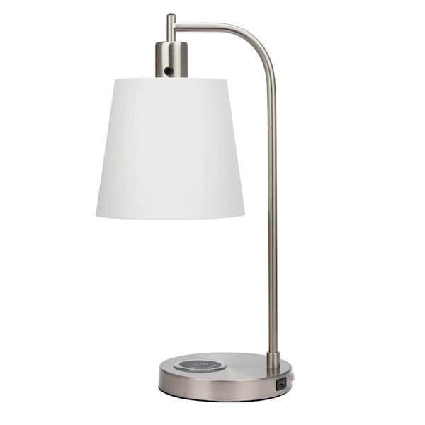 Truly a mix of design and functionality that doesn't compromise on style, this 20-inch nickel metal round bedside usb table lamp with white empire shade will be a great addition to your space. A gorgeous nickel finish metal base brings just the right amount of pizzazz to this fabulous lamp. The USB port and wireless charging station give this lamp lots of practical functionality. The white shade has a empire shape and is made from fabric. Bedside table lamps help to add a soft and cozy glow to your bedroom. Great for evening reading. Use this lamp anywhere and elevate the look of the whole space. It is perfect for virtually any decor. 19.69-inch H x 7.09-inch W x 7.09-inch D