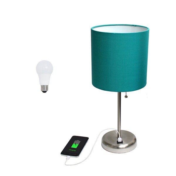 Bring of level of elegance and freshness to your space with this high quality 20-inch silver metal usb table lamp led with teal blue drum shade. The lamp is made of sturdy metal and features a silver color. The teal blue drum fabric shade is a great compliment to this lamp. This standard table lamp is designed to provide general lighting to the area. The light that this lamp throws is soft and warm to elevate the look of most any space in your home. Bring some lite and good vibes into your space with this updated and stylishly designed lamp. 19.50-inch h x 8.50-inch w x 8.50-inch d.