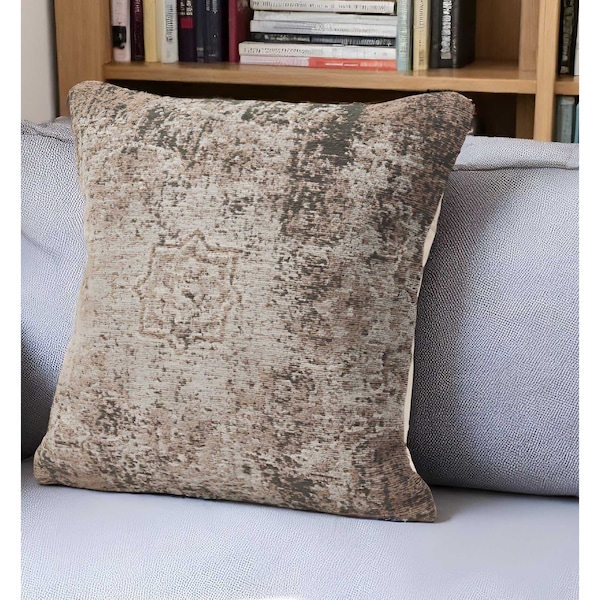 20" Taupe Chenille Throw Pillow Cover with Texture