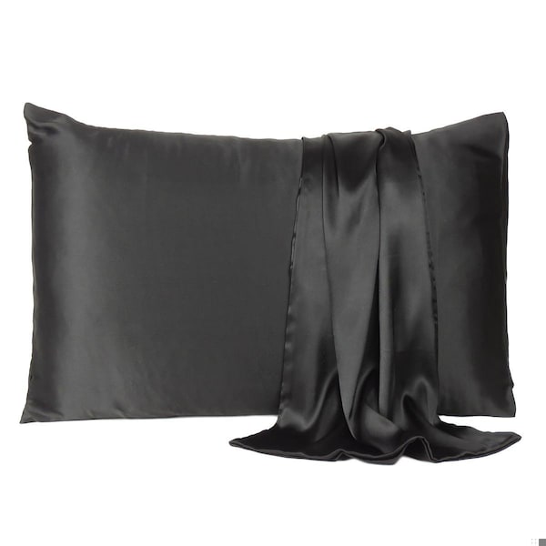 20 x 30 in. Black Dreamy Silky Satin Queen Size Pillowcases