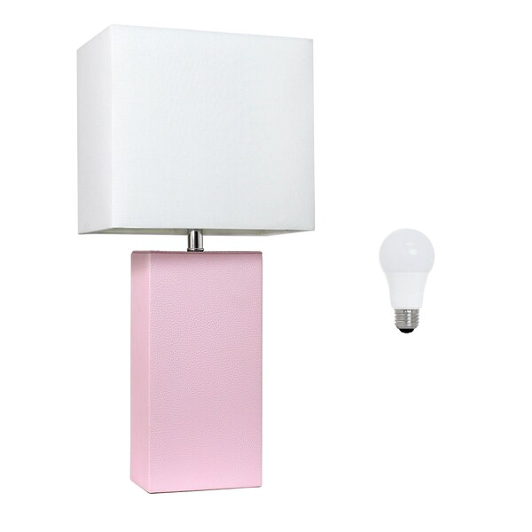 Truly a mix of design and functionality that doesn't compromise on style, this 21-inch blush faux leather table lamp led with white shade will be a great addition to your space. The base of this lamp is made of blush faux leather. The white rectangular fabric shade is finishes this piece off nicely and symmetrically this standard table lamp is designed to provide general lighting to the area. High quality design makes this a great lamp for not only lighting, but accenting a room with style. Bring some lite and good vibes into your space with this updated and stylishly designed lamp. 21.00-inch h x 6.00-inch w x 10.00-inch d.