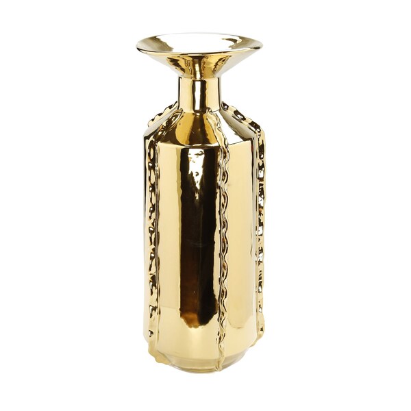 21" Gold Trumpet Ceramic Table Vase With Sculptural Details