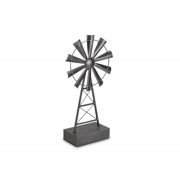 The 21" gray metal windmill hand painted sculpture is the perfect decorative accessory for your home. This gray hued piece represents high quality, expertly made from high grade metal. Accessorize your room with this chic sculpture in a gray coloration. It's a perfect addition for those who love an up-to-the-minute look and feel. Use this piece as bookshelf decor, on your desk, coffee table, or anywhere in your home. 20.75" H x 7.75" W x 4.75" D