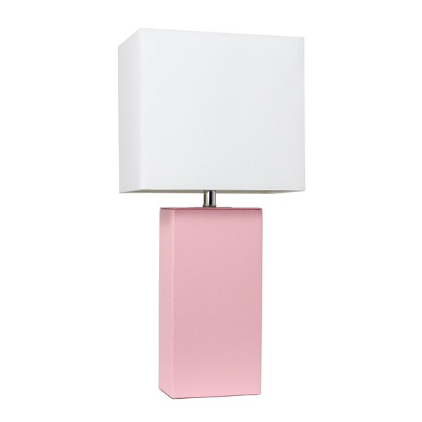 Embrace the good life with this hard working and stylish 21-inch pink faux leather table lamp with white shade. A gorgeous pink faux leather base brings just the right amount of pizzazz to this fabulous lamp. The white shade has a rectangular shape and is made of fabric, which makes it a perfect choice. This standard table lamp is designed to provide general lighting to the area. High quality design makes this a great lamp for not only lighting, but accenting a room with style. Bring some lite and good vibes into your space with this updated and stylishly designed lamp. 21.00-inch h x 6.00-inch w x 10.00-inch d.