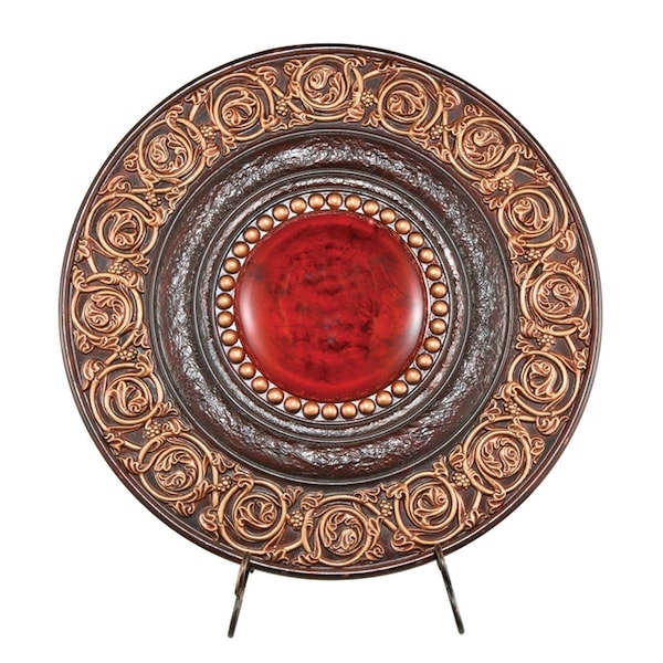 21" Red And Brown Round Polyresin Decorative Plaque