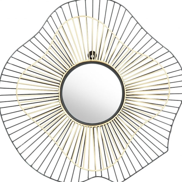 A delectable piece of furniture, this 22-inch black abstract metal framed accent mirror is an embellishment perfect for your rooms. The frame of this mirror is made from metal which has a stainless steel color to it. The abstract shaped mirror adds a nice touch of depth and texture and also makes it very practical. This frame works nicely with the full-bodied mirror in the middle. The contemporary style of this piece will work great in any room you choose to put it in. Due to its high quality construction, it will last a lifetime. This unique mirror will look great as part of your existing decor or you can use it as a statement piece anywhere in your home. 22-inch H x 22-inch W x 2-inch D