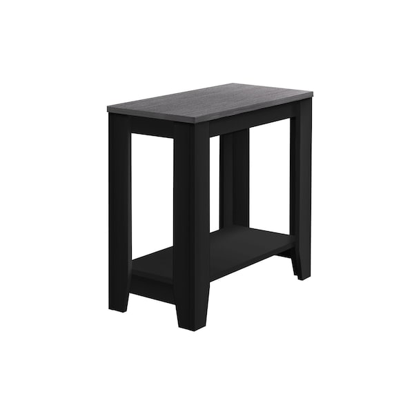 Show off your exquisite taste with this 22-inch black and gray end table with shelf. Offering a nice color combination, the top of this manufactured wood table is gray, while the base compliments it nicely in black. Help to keep your space organized with the included single shelf. An ideal location for placing your snacks and drinks, and a place to keep your lamp, frames, or other accessories. You can also use it as an entryway table to hold your keys. 22-inch H x 11.75-inch W x 23.75-inch D