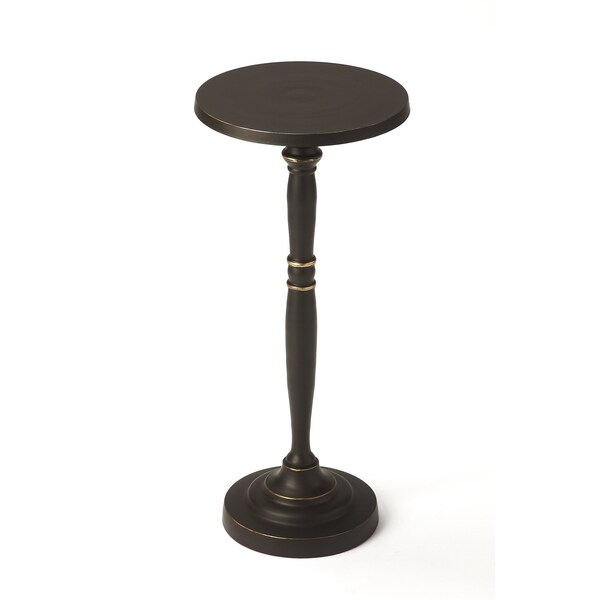 Show off your exquisite taste with this 22-inch black distressed aluminum round pedestal end table. This table is made from aluminum in a black color throughout the base and top. Complete with a purposefully distressed finish, this table has an aged, vintage, and rustic feel. A great accent on either side of the sofa or bed, this adorable end or side table is just what you need. You can also use it as an entryway table to hold your keys. 22.25-inch h x 10-inch w x 10-inch d.