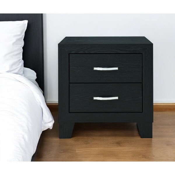 22" Black Solid and Manufactured Wood Two Drawer Nightstand