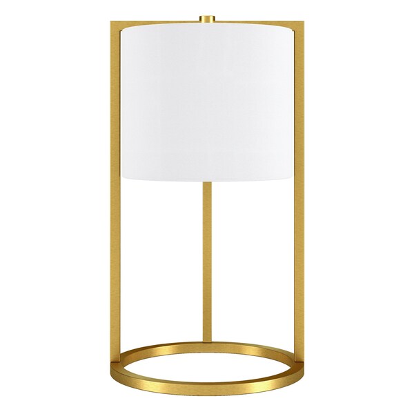 Add a bright anchor to your room with this 22-inch brass metal table lamp with white drum shade. The lamp is made of sturdy metal and features a brass color. The white drum fabric shade is finishes this piece off nicely and symmetrically this standard table lamp is designed to provide general lighting to the area. High quality design makes this a great lamp for not only lighting, but accenting a room with style. It is perfect for virtually any decor. 22-inch H x 12-inch W x 12-inch D