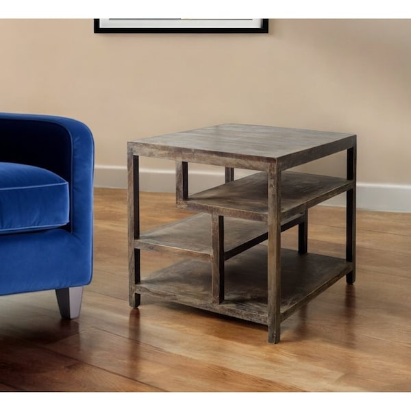 Distinctive in style the 22-inch brown solid wood square end table radiates a versatile charm. This table features quality construction from solid wood and an updated monotone color scheme with brown as the main color on both the top and the base. Side tables are a great way to flank your sofa, use as an accent next to your favorite chair, or can even be used bedside. You can also use it as an entryway table to hold your keys. 21.9-inch H x 22-inch W x 22-inch D