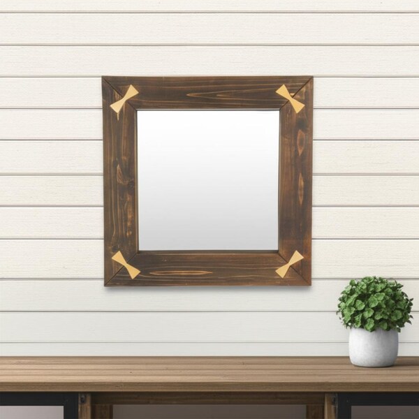 Beautify your space with this 22-inch brown wood square accent mirror. Framed with wood, this mirror will bring practical application and fashionable design to your space, adding some country flair to your decor. This mirror will be a great useful addition to your home but will also help elevate the space in the room. Add this exceptional quality mirror to your space for a beautiful reflection and a bit of elevated style. 22-inch h x 22-inch w x 2-inch d.