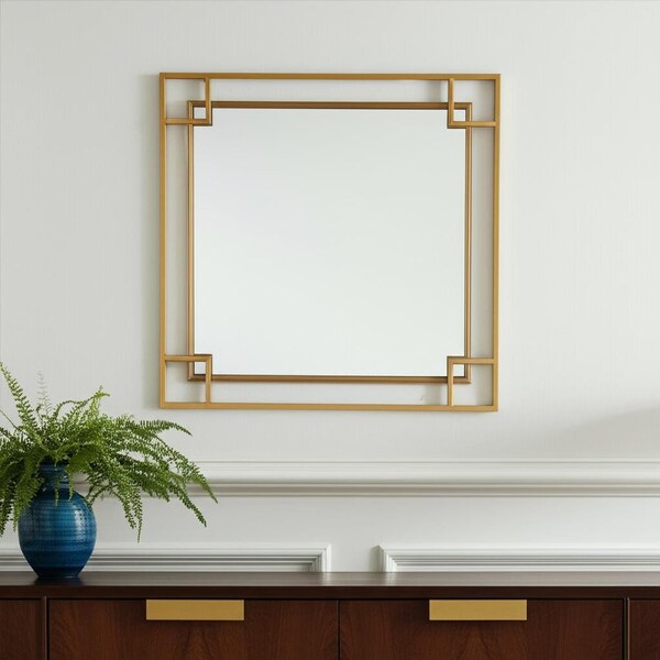 Beautify your space with this 22-inch gold metal square accent mirror. Add aesthetic appeal with this geo square mirror that features an art-deco mid-century modern inspired style. Framed with metal, this mirror will bring practical application and fashionable design to your space, adding some contemporary flair to your decor. This mirror will be a great useful addition to your home but will also help elevate the space in the room. Produced with premium quality glass for a beautiful reflection, this mirror will provide an exceptional visual experience. 22-inch h x 22-inch w x 1-inch d.