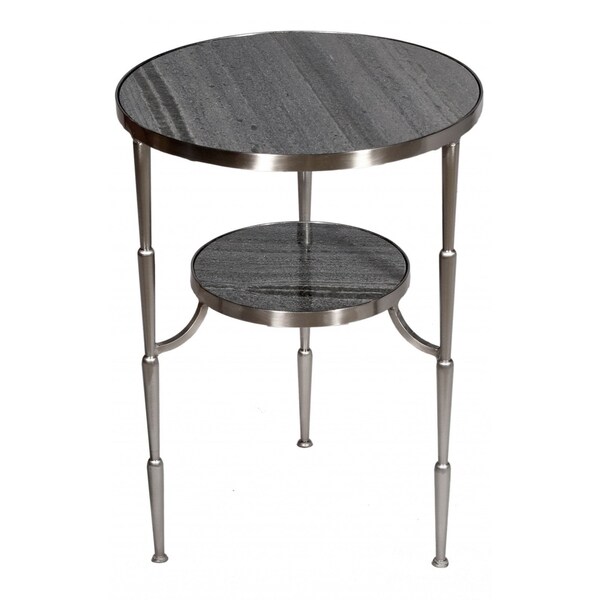 Distinctive in style the 22" nickel marble and iron round end table radiates a versatile charm. The nickel coloration runs throughout this good looking iron and marble table. Side tables are a great way to flank your sofa, use as an accent next to your favorite chair, or can even be used bedside. You can match it with other pieces to get the ideal look for your place. 22" H x 16" W x 16" D